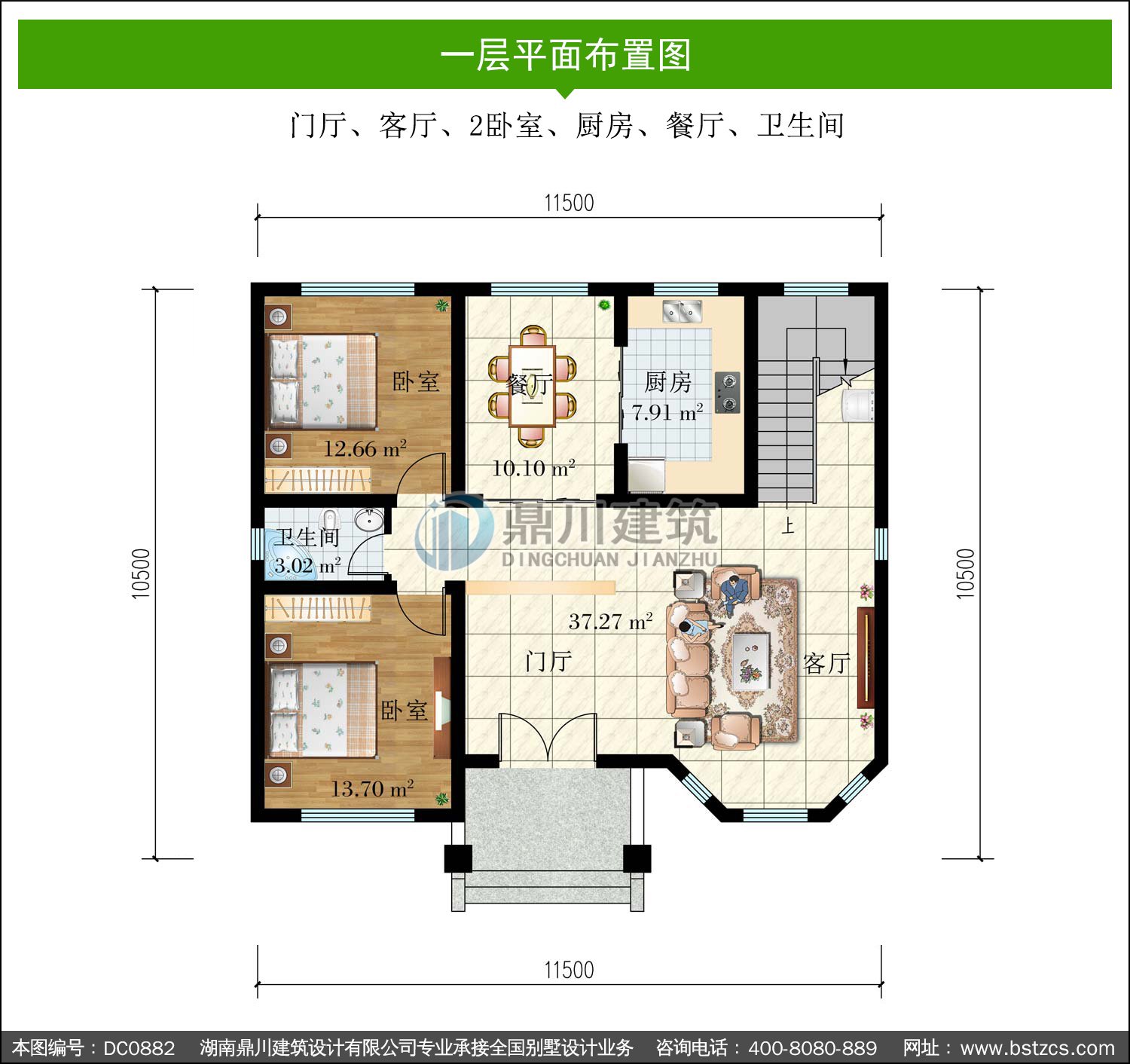 | 一 層: | 門廳、客廳、2臥室、廚房、餐廳、衛生間 | |||