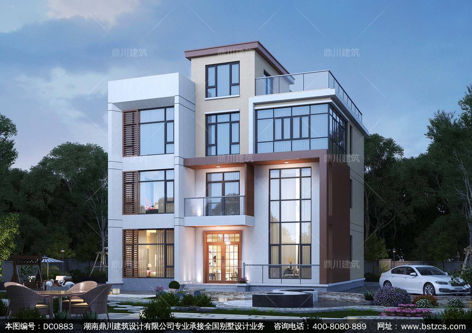 現代三層簡約別墅設計圖紙及效果圖_新農村自建別墅設計,鼎川建