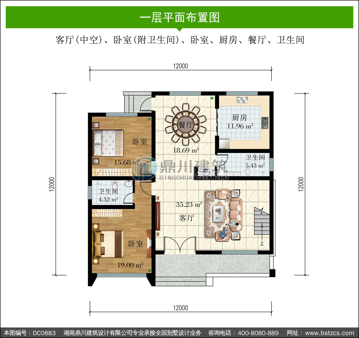 | 開間: 12米 | 進深: 12米 | 占地面積: 143.94平方米 | 建筑面積: 405.84平方米 |