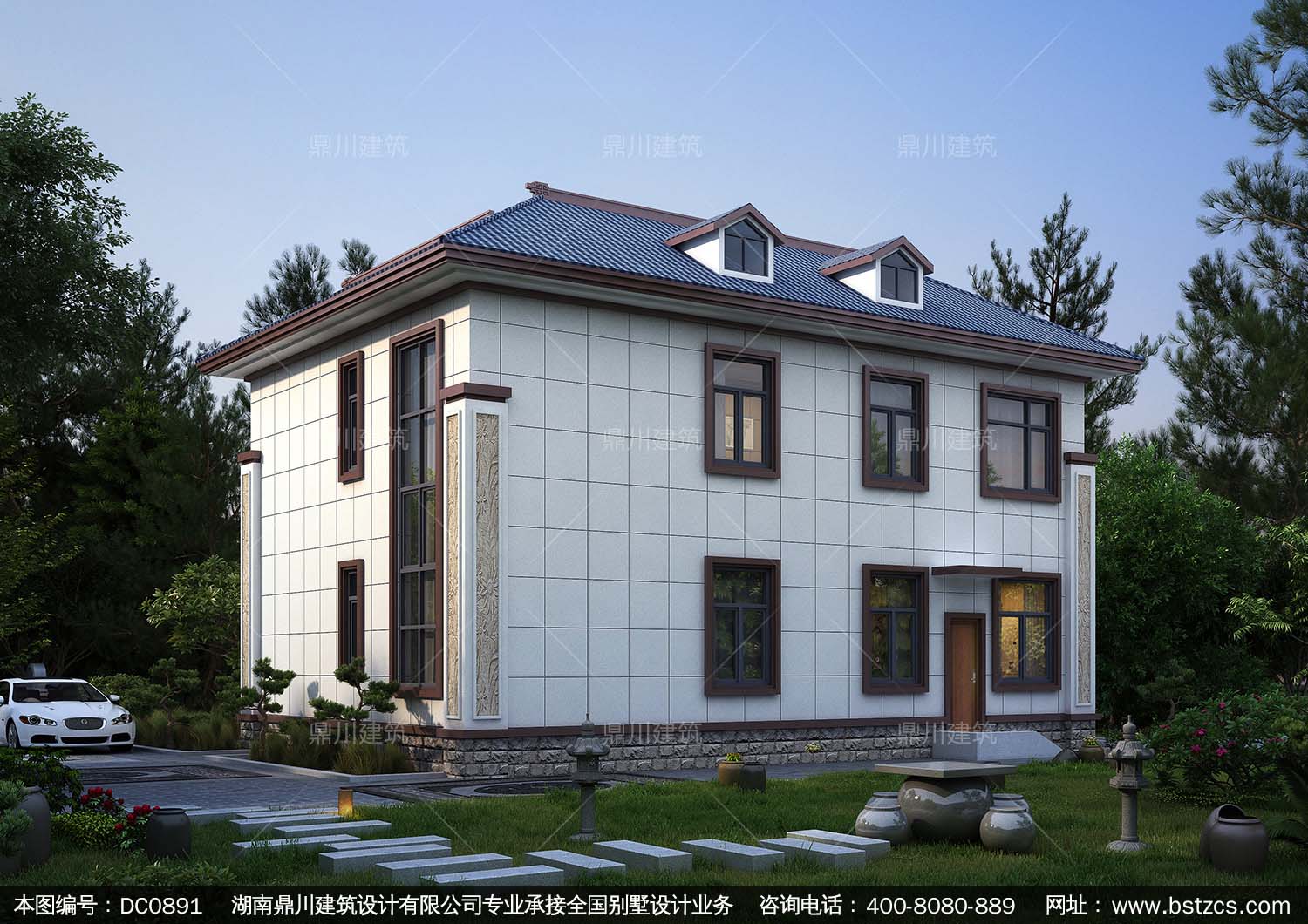 大氣的新中式二層別墅施工圖紙及效果圖_農村兩層自建房設計,鼎
