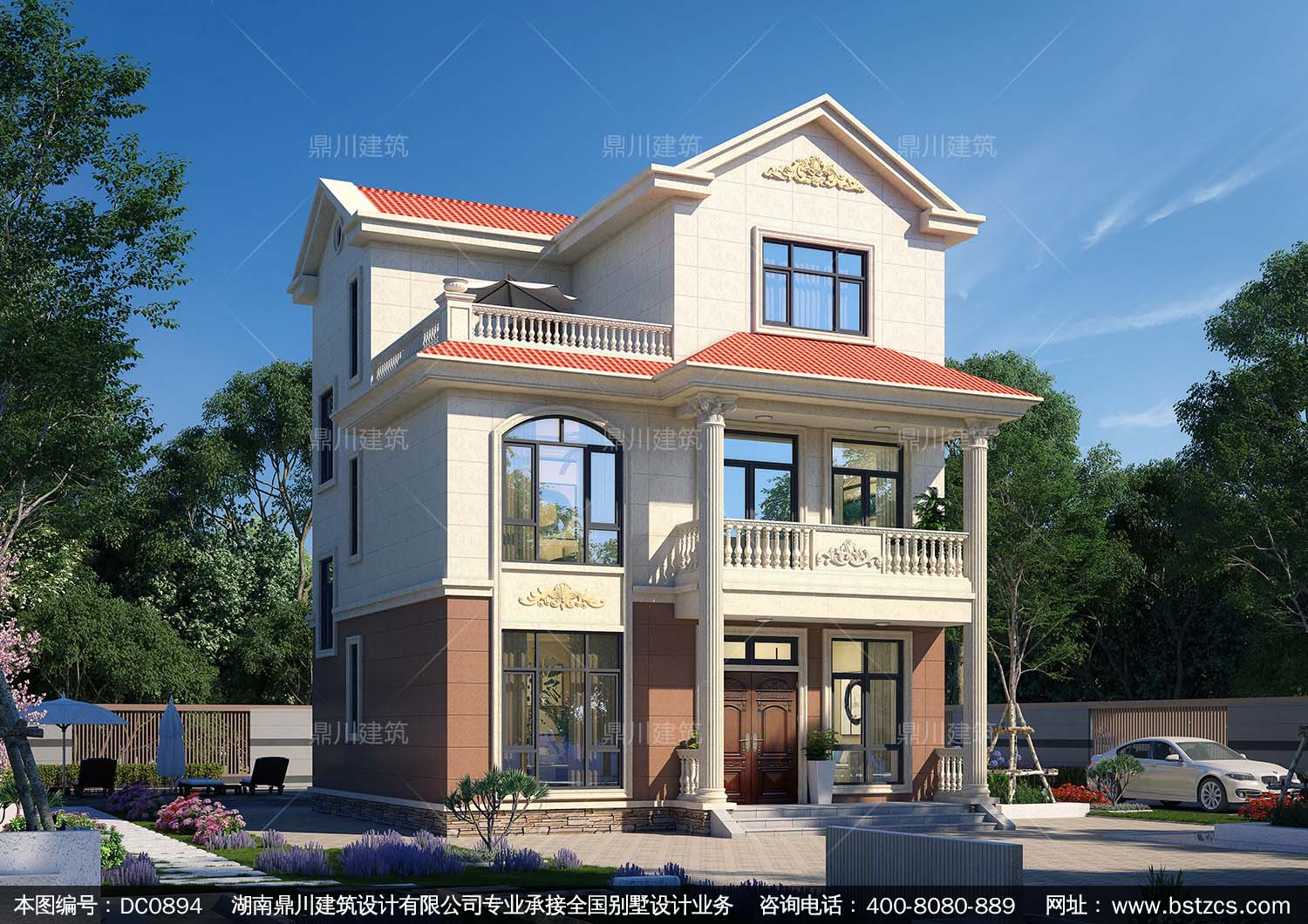 三層歐式小戶型農村別墅效果圖及施工圖_鄉村自建房設計,鼎川建筑