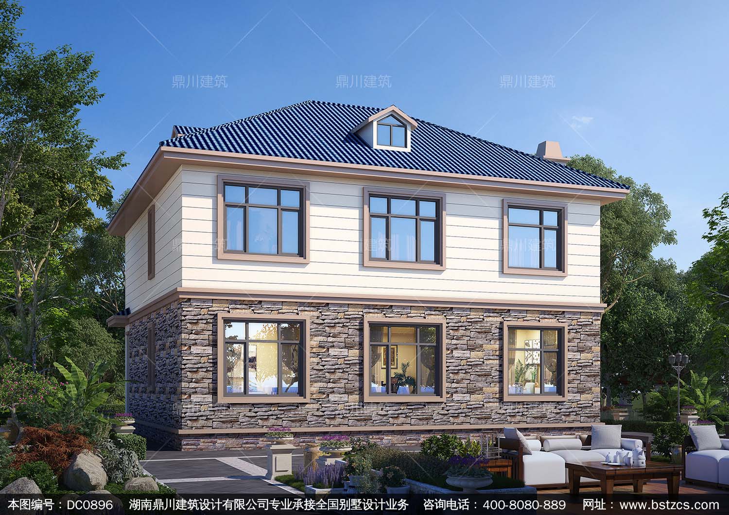 歐式二層帶露臺別墅施工圖紙及效果圖_農村自建房設計,鼎川建筑