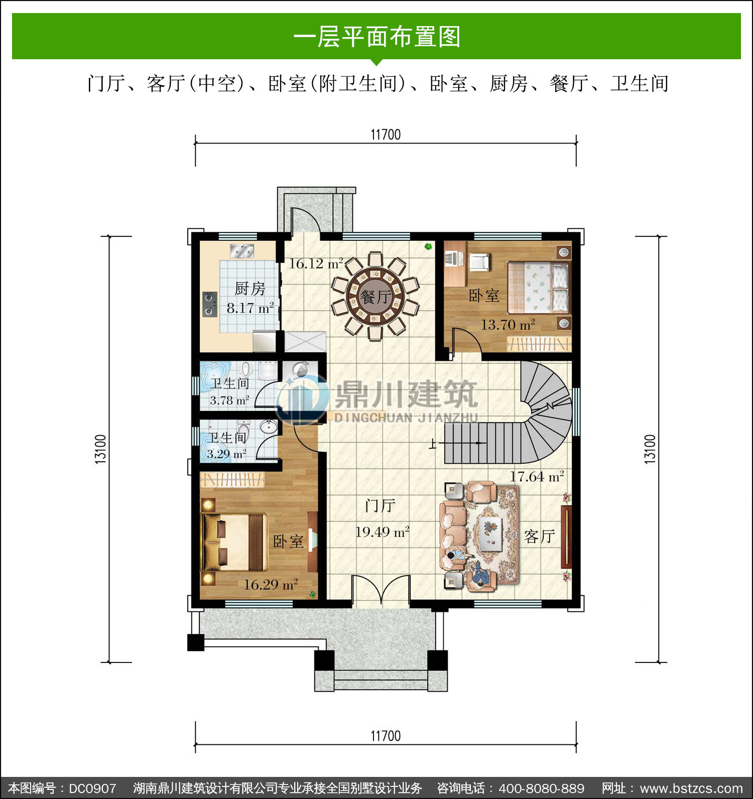 | 編號: DC0907 | 層數: 三層 | 結構形式: 磚混結構 | 主體造價: 38-45萬 |