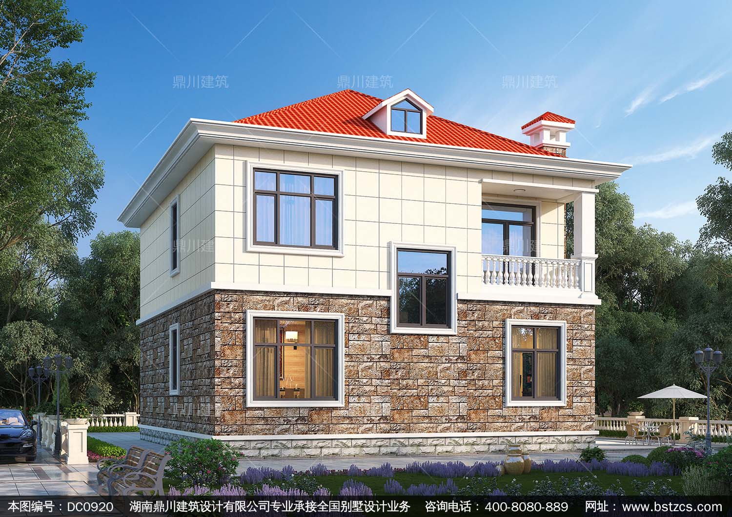 農(nóng)村二層帶陽臺(tái)小別墅效果圖及施工圖紙_鄉(xiāng)村自建房設(shè)計(jì),鼎川建筑