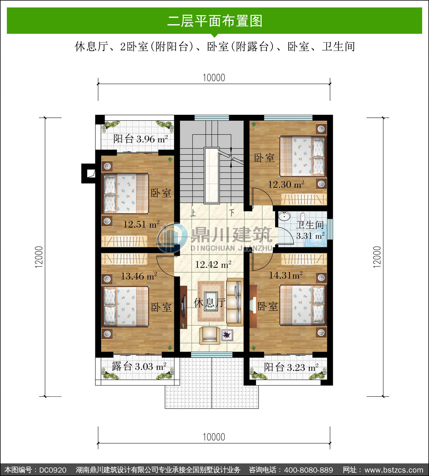 | 二 層: | 休息廳、2臥室(附陽臺(tái))、臥室(附露臺(tái))、臥室、衛(wèi)生間 | |||
