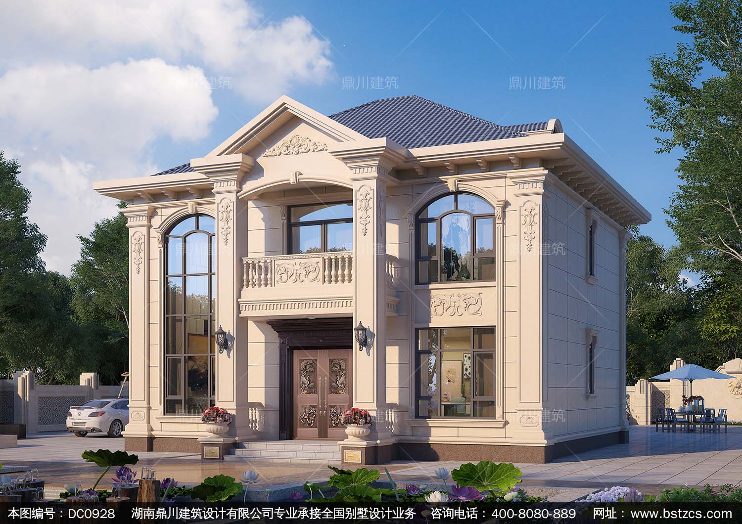 歐式二層帶露臺小別墅外觀效果圖及施工圖紙_農村自建房設計,鼎