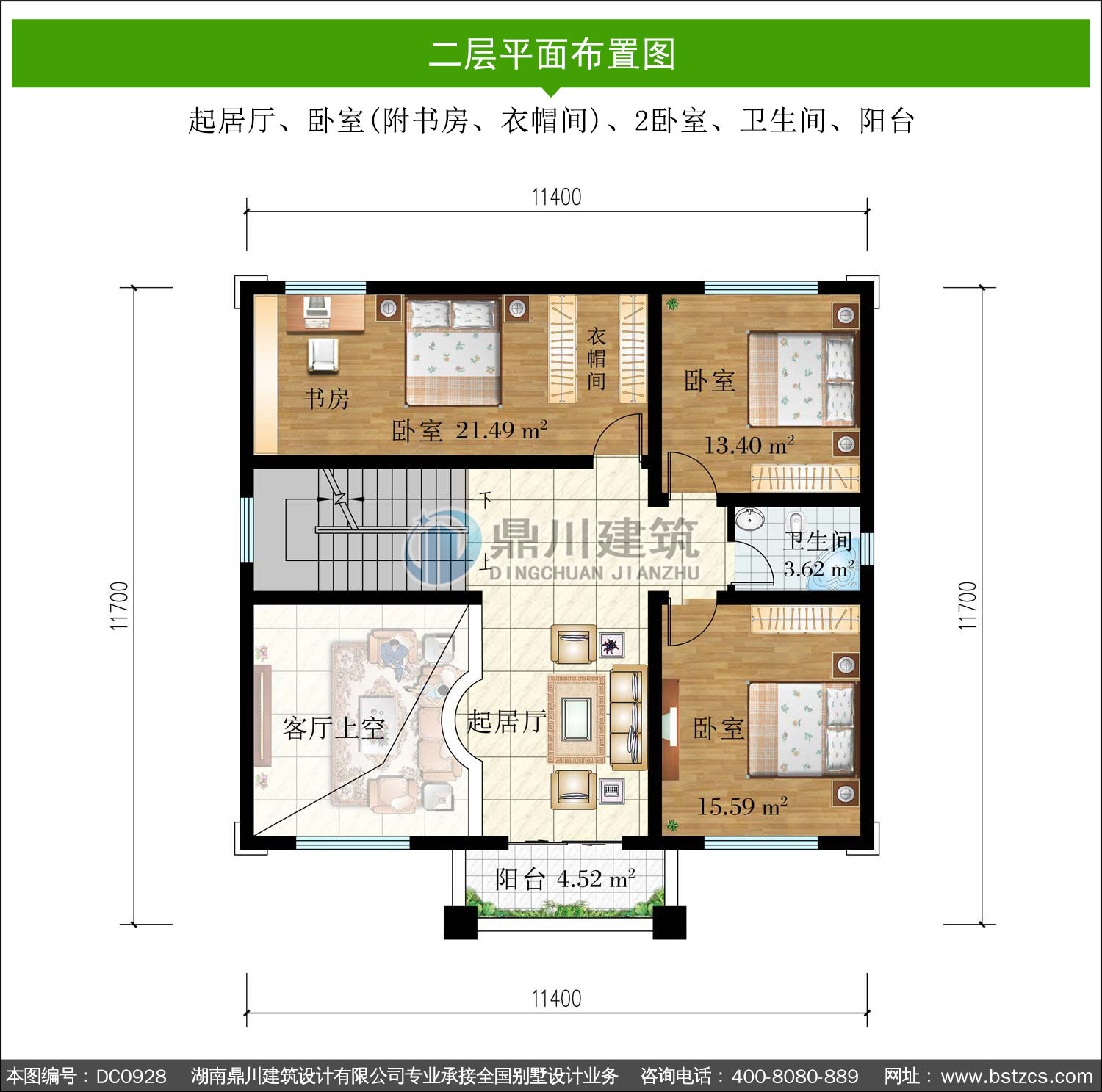 二層復式帶陽臺別墅施工圖紙及效果圖_新農村兩層自建房設計,鼎川建筑