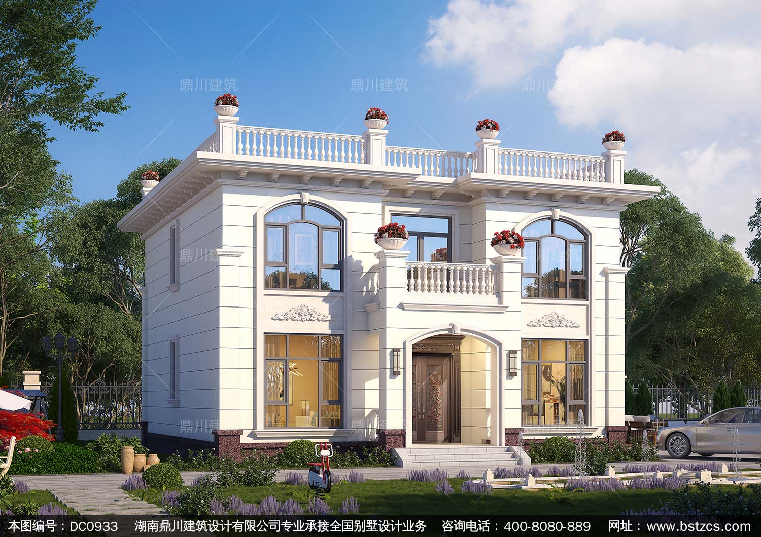 二層簡歐帶露臺別墅設計圖紙及效果圖_新農村自建房屋設計,鼎川