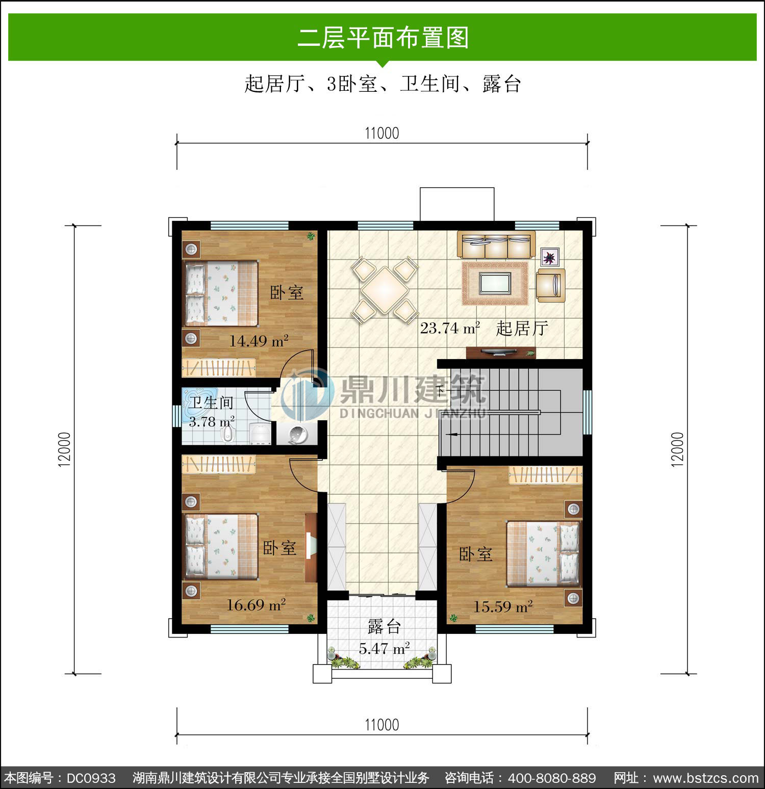 二層簡歐帶露臺小別墅施工圖紙及效果圖_新農村自建房屋設計,鼎