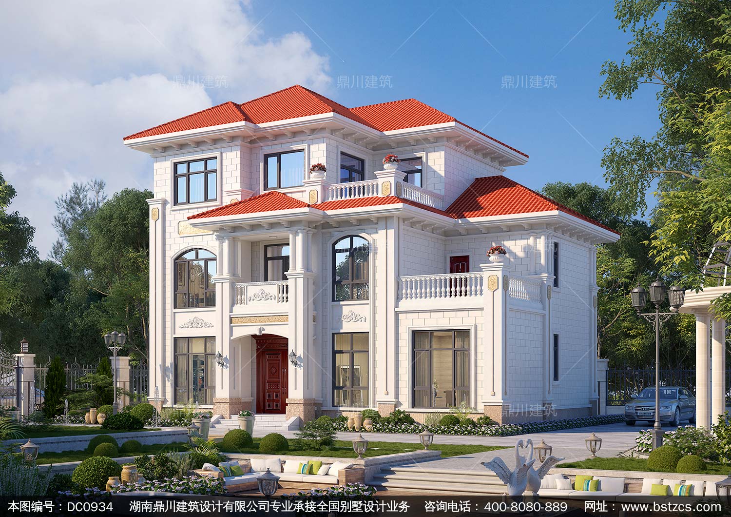 歐式三層帶露臺別墅設計施工圖紙及效果圖_新農(nóng)村自建房設計,鼎川建筑