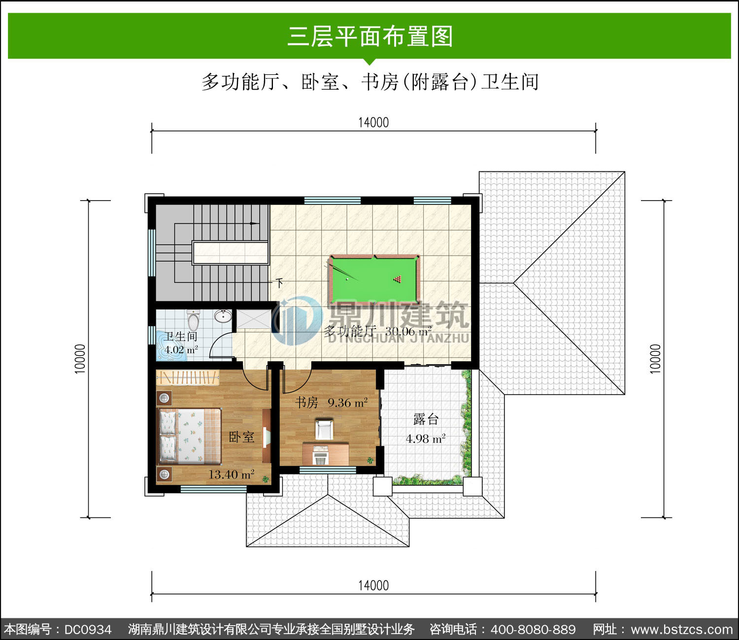 | 三 層: | 多功能廳、臥室、書房(附露臺)衛(wèi)生間 | |||