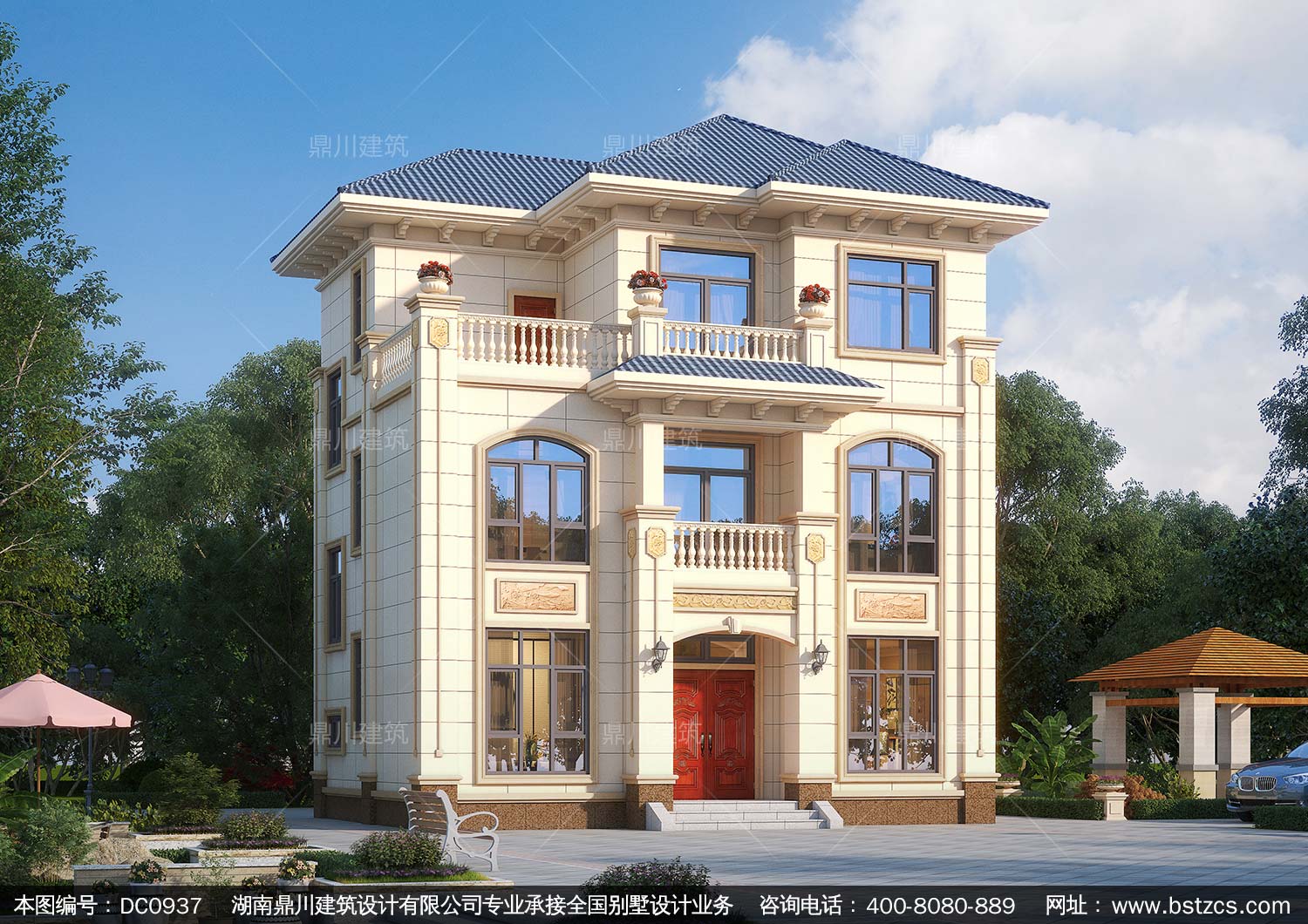 歐式三層帶露臺實用別墅圖紙_新農村自建房設計效果圖,鼎川建筑