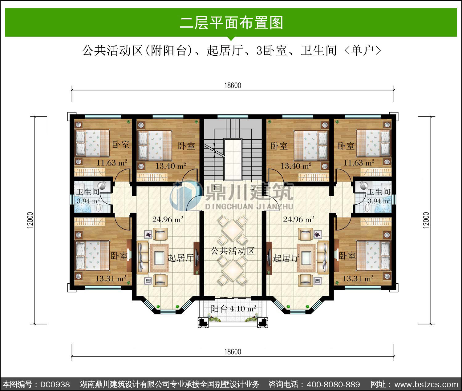 | 二 層: | 公共活動區(附陽臺)、起居廳、3臥室、衛生間 <單戶> | |||
