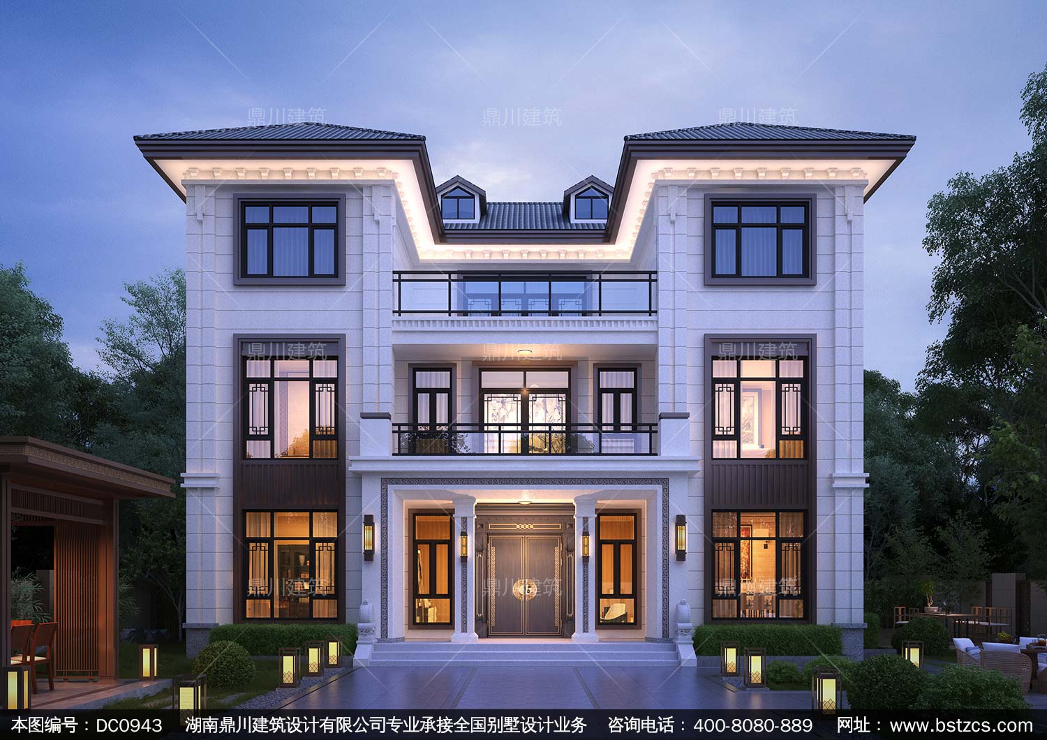 大氣三層新中式別墅設計圖紙及效果圖_農村自建別墅設計,鼎川建
