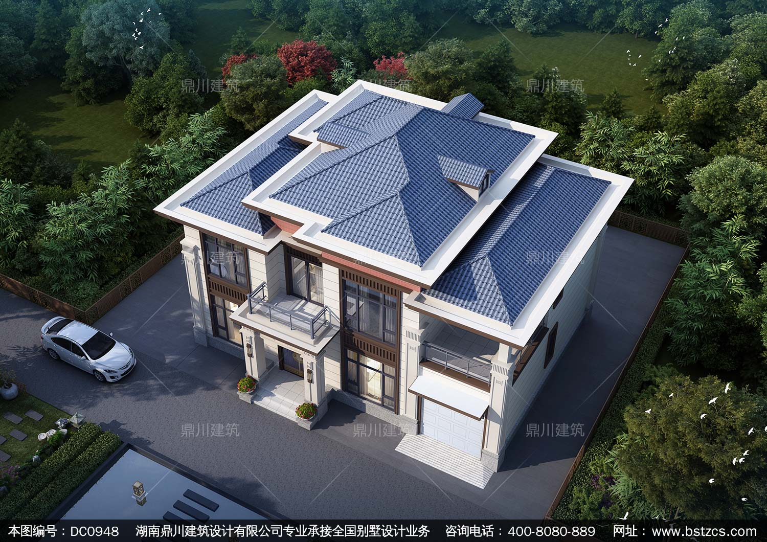 大氣二層新中式帶車庫別墅圖紙及效果圖_農村兩層自建別墅設計,鼎川建筑