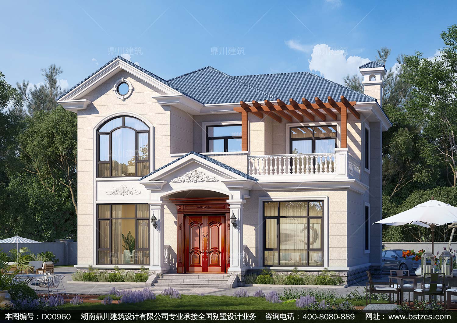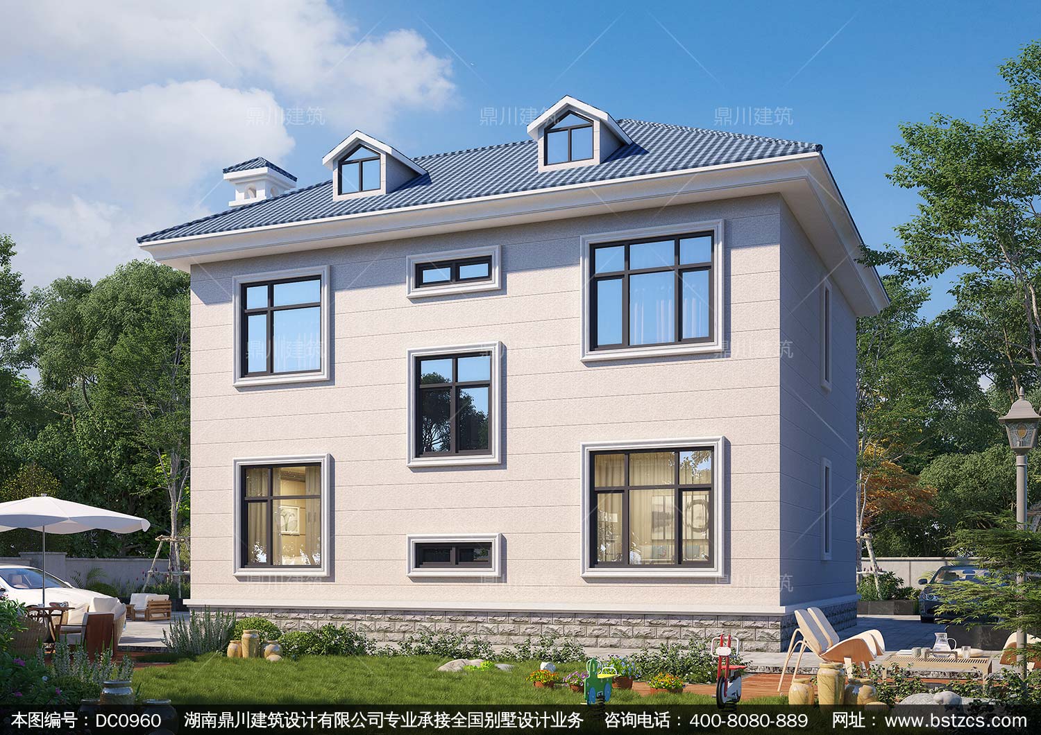 歐式二層帶露臺別墅全套施工圖紙及效果圖_農村自建房設計,鼎川