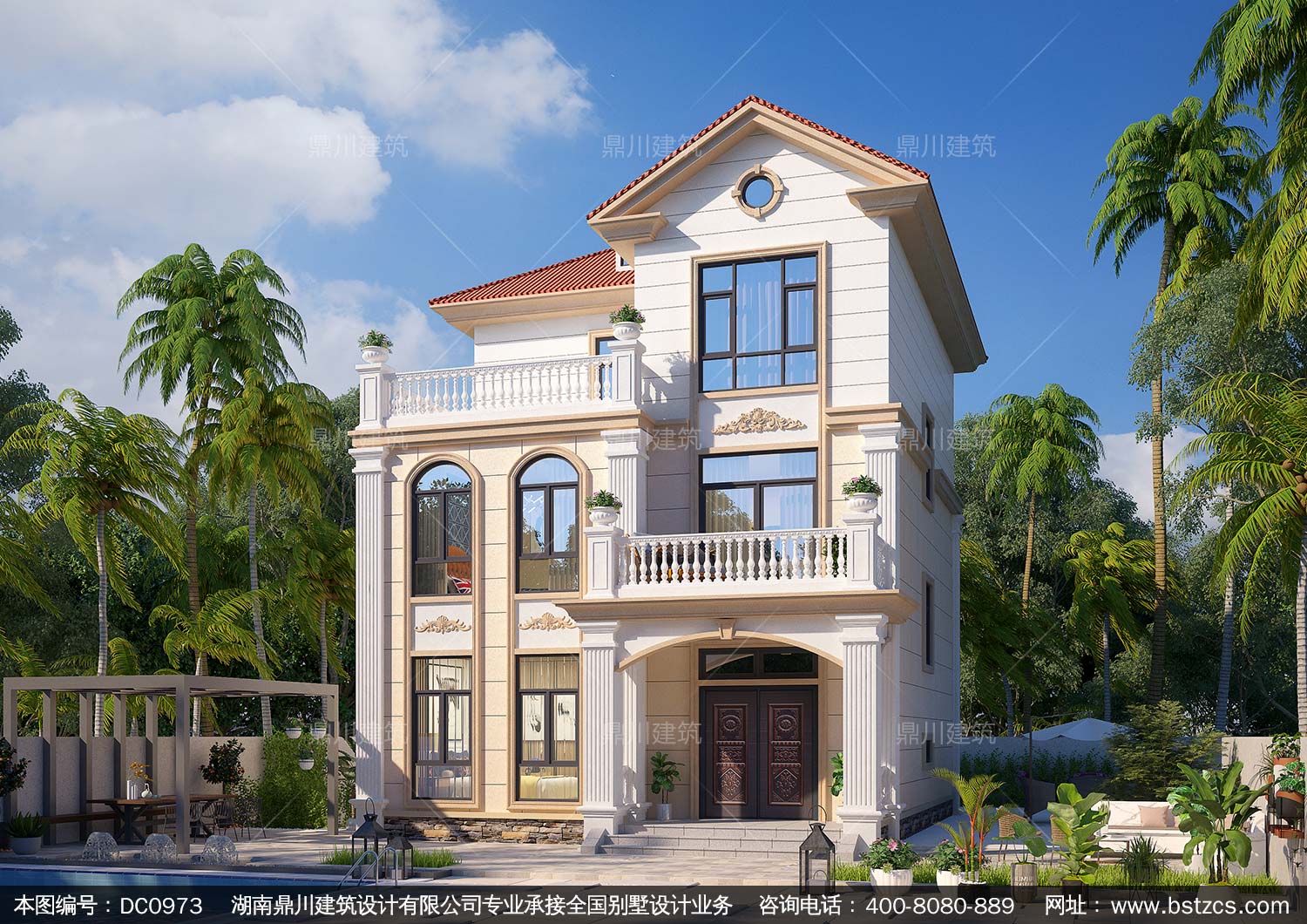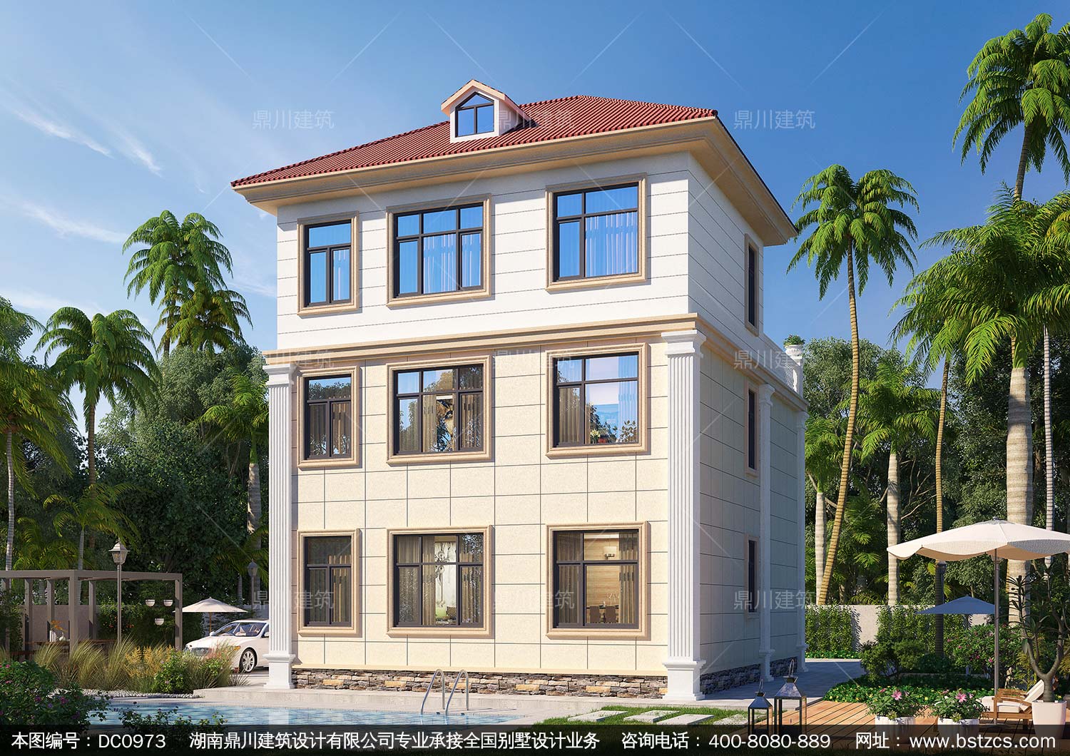 歐式三層帶露臺(tái)小戶型別墅施工圖紙及效果圖_農(nóng)村自建房設(shè)計(jì),鼎川建筑