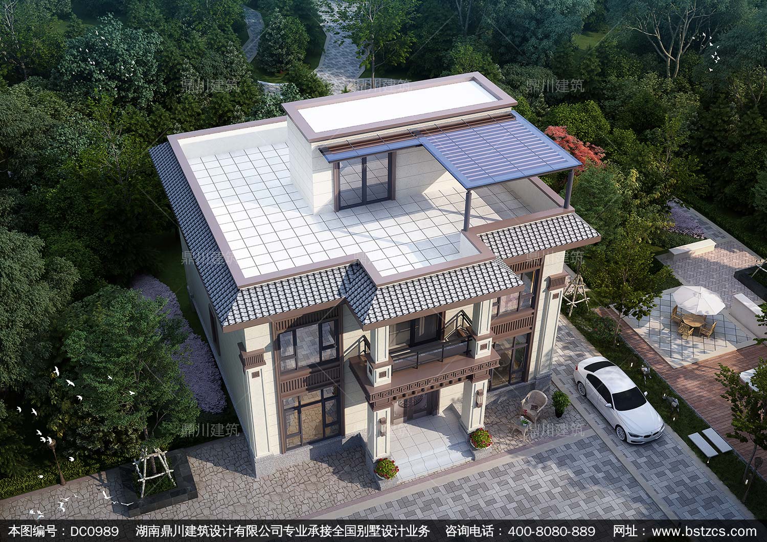 新中式三層復式別墅圖紙及效果圖_農村平屋頂別墅設計,鼎川建筑