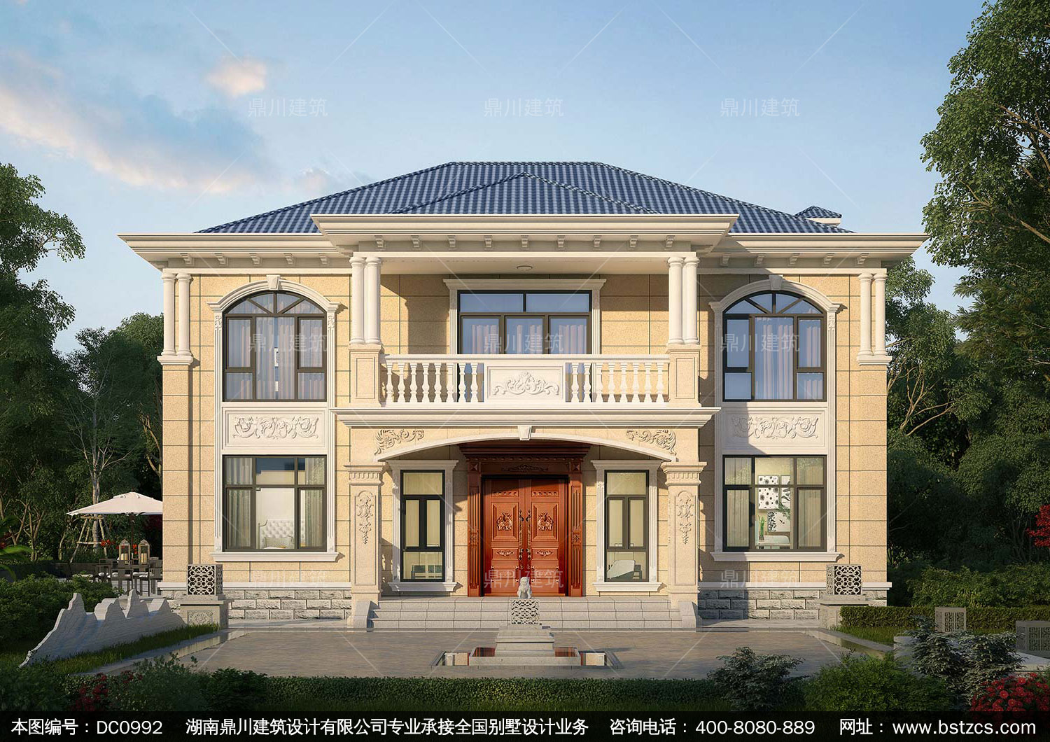 歐式二層帶陽臺別墅效果圖及施工圖紙_農村自建房設計,鼎川建筑