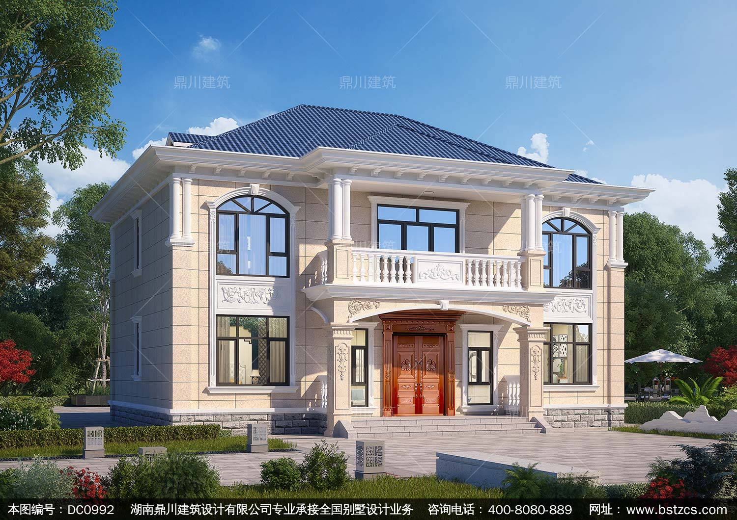 歐式二層帶陽臺別墅施工圖紙及效果圖_新農村自建房設計,鼎川建筑