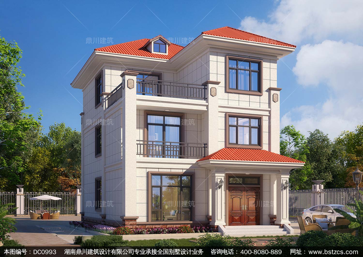 歐式三層小戶型復式別墅圖紙及效果圖_農村自建房設計,鼎川建筑