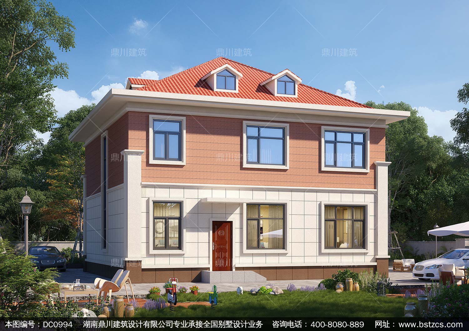 二層帶陽臺別墅施工圖紙及效果圖_農(nóng)村自建房設(shè)計,鼎川建筑