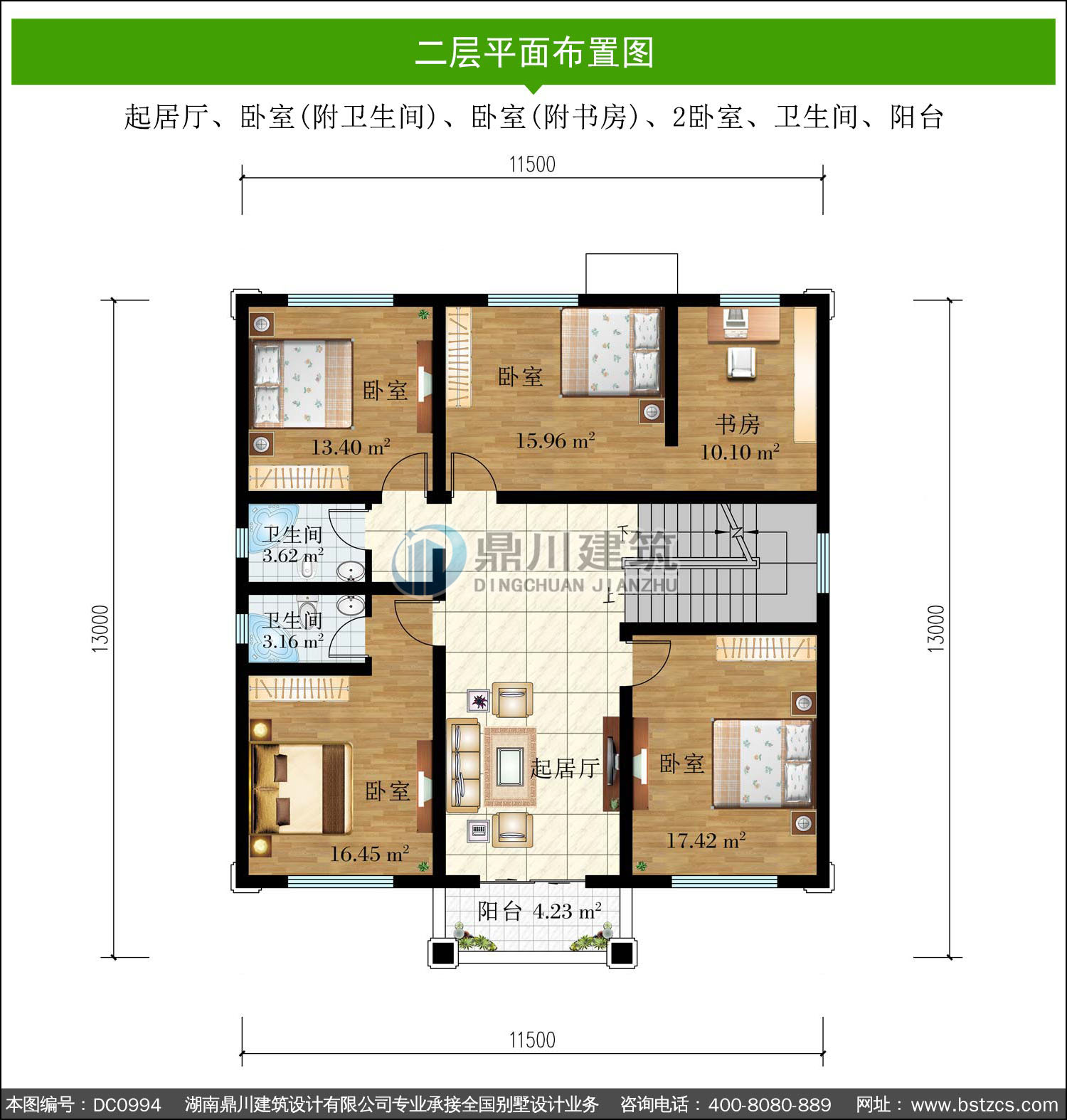 | 二 層: | 起居廳、臥室(附衛(wèi)生間)、臥室(附書房)、2臥室、衛(wèi)生間、陽臺 | |||