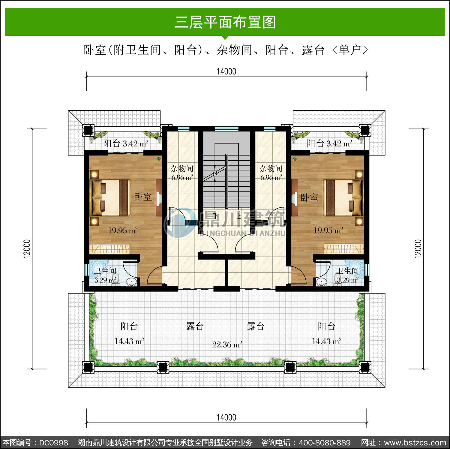 雙拼三層實用別墅圖紙及效果圖_新農村兄弟自建房設計,鼎川建筑